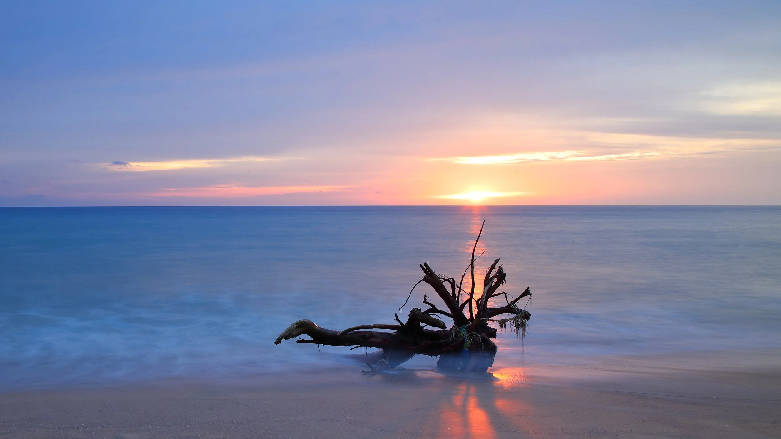 As night falls and the sun dips below the horizon, the cosmos lights up with countless stars, while the moon gracefully moves across the sky.